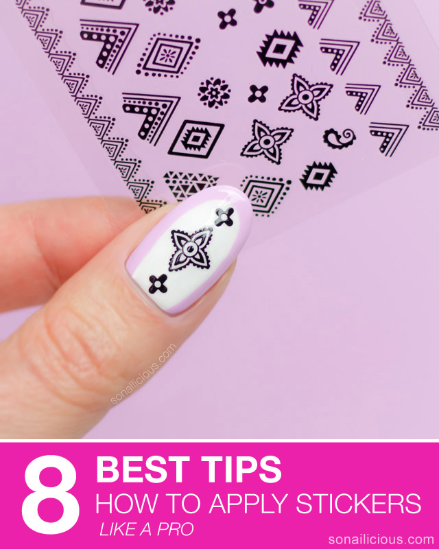On the other hand, nail stickers (also known as nail decals) don’t cover your entire nail. They come in the form of patterns or small objects/shapes and are usually applied over polished nails. For instance, the SoNailicious stickers fall into this category. So, to sum it up, this is the main difference between nail wraps and nail stickers. Now, let’s move on to the juicy tips for applying nail stickers flawlessly!